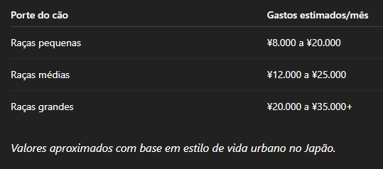 Banho: ¥3.000 a ¥6.000 (raças pequenas a médias)